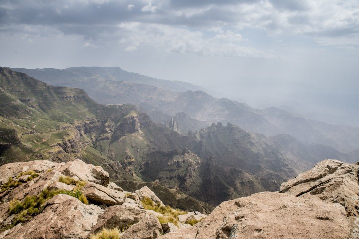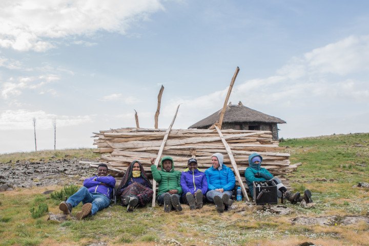 After six hours of hiking on the flat high plateau and some resting along the way we finally reach our overnight stay at Degosach Eco Lodge from where we will head towards the Mt. Abuna Yoseph Community Conservation Area tomorrow. Degosach nestles on a lofty hill top with amazing views into the lowlands. At 3,800 meters high above Lalibela we get cosy at the warm campfire that the guards prepare for us in the evening. For dinner we slaughter a sheep and exchange hikers stories while eating a traditional Ethiopian dinner with sheep meat and injera.